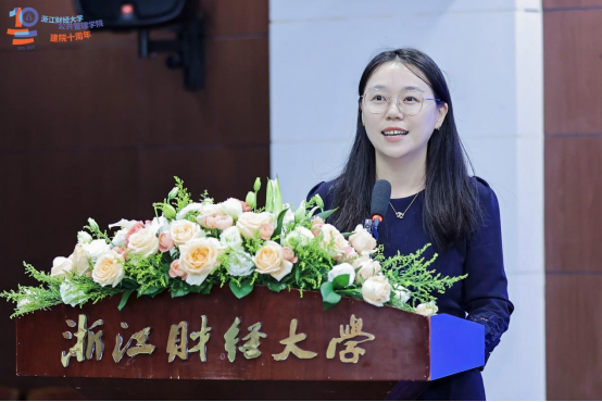浙江财经大学城市管理系王笑言副教授作为教师代表发言。作为建院之初加入的“青椒”,她见证了学院从初创到形成完整学科体系的发展之路,十年是里程碑更是新起点,新一代公管人将以谦逊之心学习、以合作之态交流、以务实之风奋进,共同推动学院迈向更加辉煌的未来。