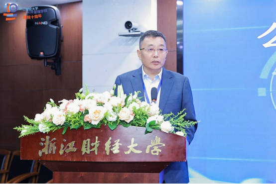 大会第二阶段是高质量发展汇报和致谢环节。浙江财经大学公共管理学院院长史云贵教授作《浙江财经大学公共管理学科高质量发展汇报》,围绕学科建设、人才培养与社会服务等方面,他深情回顾了我院十年来的奋进历程与成果,强调未来将推动学科交叉融合,走绿色化、智能化、国际化的发展道路,全力打造具有浙财特色的公共管理学科品牌。