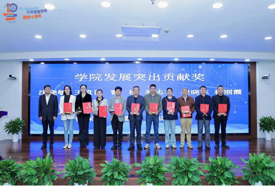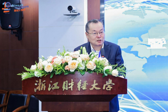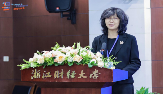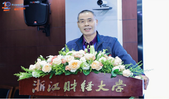 国务院学位委员会公共管理学科评议组成员、教育部公共管理类教学指导委员会副主任委员、南京农业大学公共管理学院欧名豪教授在致辞中对学院未来发展提出三点期望:强化“公管+财经”“公管×数智”的融合,培育新兴专业方向;深化教学改革,打造具有浙江辨识度的“金课”与教学团队;拓展实践育人,依托浙江“重要窗口”的区位优势,让学生在真实治理场景中淬炼能力。他表示,教指委将持续支持学院发展,期望公共管理学院以建院十周年为新的起点,加快建设成为国内有影响力的公共管理人才培养高地。