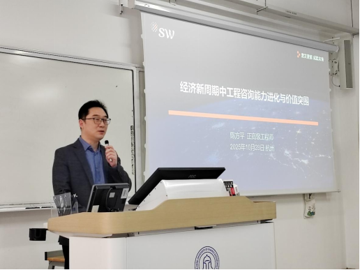 日前,我院特邀建信永中和工程管理有限公司合伙人、杭州分公司负责人、教授级高工陈方平先生,为师生带来题为《经济新周期中工程咨询能力进化与价值突围》的专题演讲。陈方平教授系统阐述了当前工程咨询行业的发展现状,深入剖析了新经济周期下面临的挑战与信永中和的应对策略,并结合自身经验,就大学生提升职场胜任力、养成终身学习习惯以及增强经济周期适应能力等方面提出了宝贵建议。