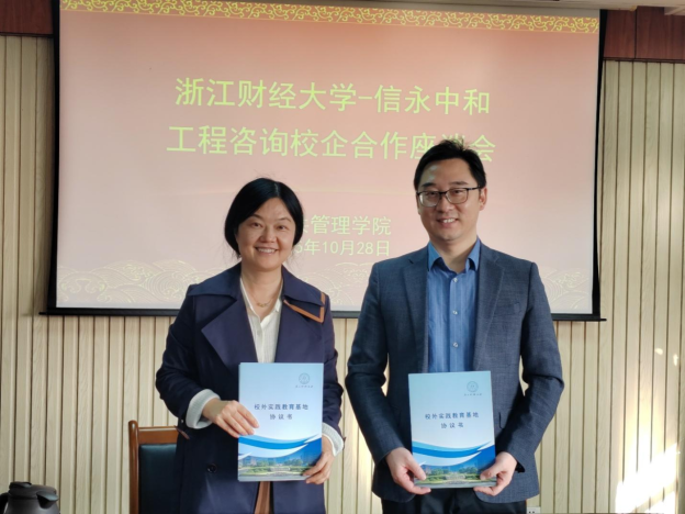 林亚芳代表学院对企业嘉宾的到来表示热烈欢迎。陈方平对学院的接待表示感谢,并指出公司所倡导的“工程咨询价值共创”理念,与我校培养具有财经特色的全过程工程管理与咨询人才的目标高度契合。双方围绕产学合作、平台共建、实习实践、学术交流等内容展开深入交流,在加强资源共享、推动优势互补上达成广泛共识。最后,双方共同签署了校企实践基地合作协议,标志着双方合作进入实质性推进阶段。