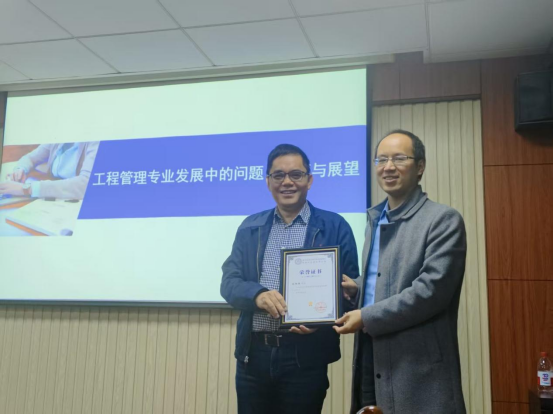 12月12日下午,我院特邀河北工业大学副校长刘炳胜教授和重庆大学管理科学与房地产学院党委书记毛超教授,分别就工程管理专业建设及数智人才培养做专题报告。讲座由我院工程管理系主任王鸿迪副教授主持,学院各专业师生积极参与。