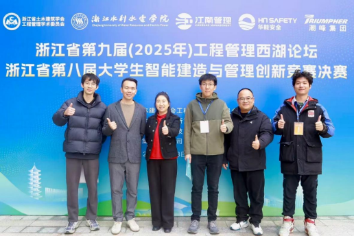 本届赛事由浙江省土木建筑学会工程管理学术委员会主办,浙江水利水电学院等单位承办,吸引全省11所高校41支队伍参与。经过多轮评审,共有22支队伍晋级决赛。我院MEM团队在黄莉老师的指导下,由解晨辰、熊朝阳、叶子瑜、李侃、孙晓晨五位同学组成的队伍,凭借创新设计与出色表现脱颖而出。