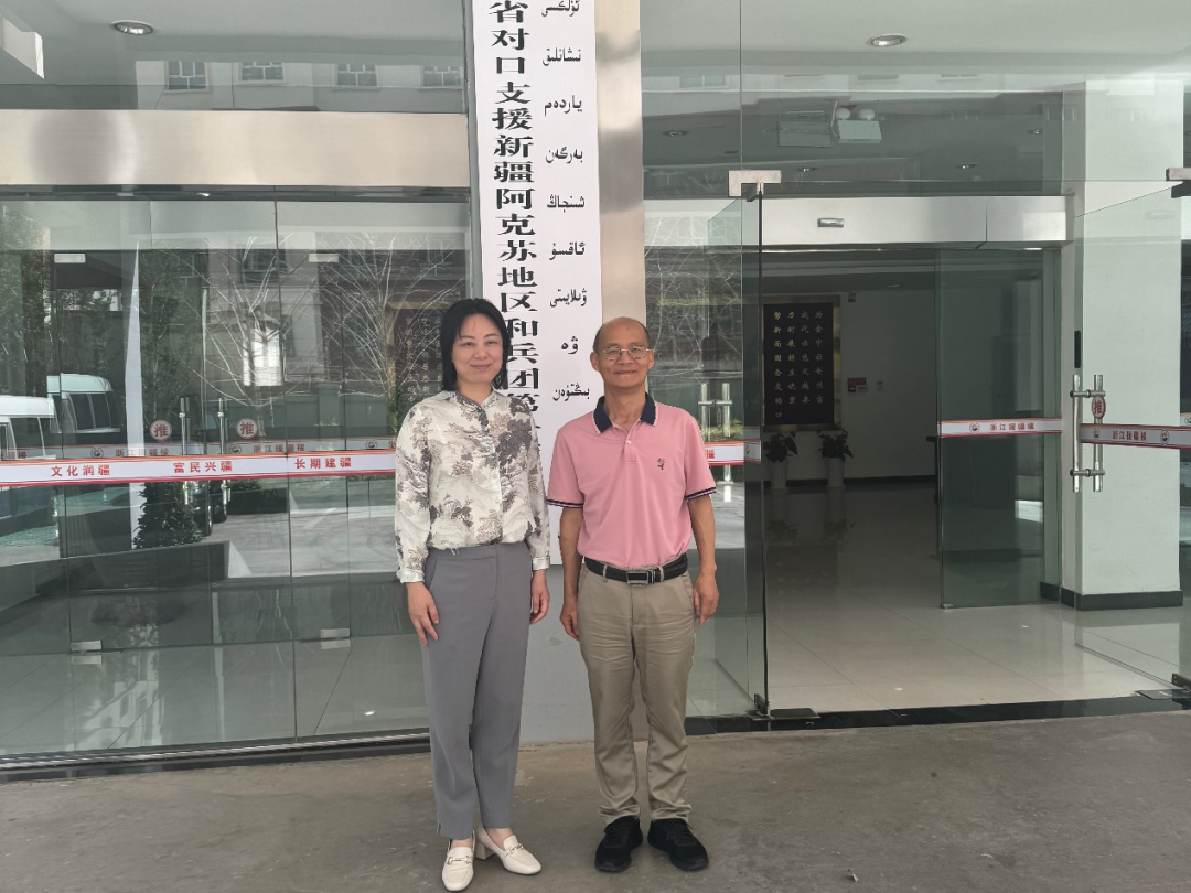 7月下旬,我院名誉院长郭剑鸣带队走访浙江省援疆指挥部(阿克苏地区)、绍兴援疆指挥部(阿瓦提县)、嘉兴援疆指挥部(沙雅县),并走访看望阿克苏地区校友,受到了浙江省援疆指挥部指挥长、党委书记骆梅英、绍兴市援疆指挥部干部人才管理组组长斯章炳、嘉兴援疆指挥部办公室主任朱世鹏、沙雅县委办副主任马帅、校友宣俊杰、向潜等的热烈欢迎。