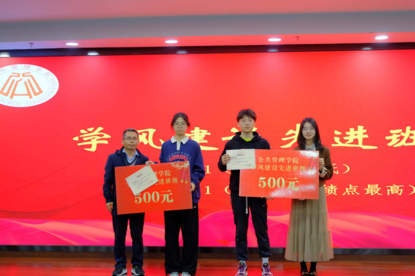 为促进学风建设,鼓励各班同学相互扶持,团结协作,大会向学院2022级挂科率最低班级、平均学分绩点最高的班级颁发了公共管理学院“学风建设先进班级”荣誉称号。