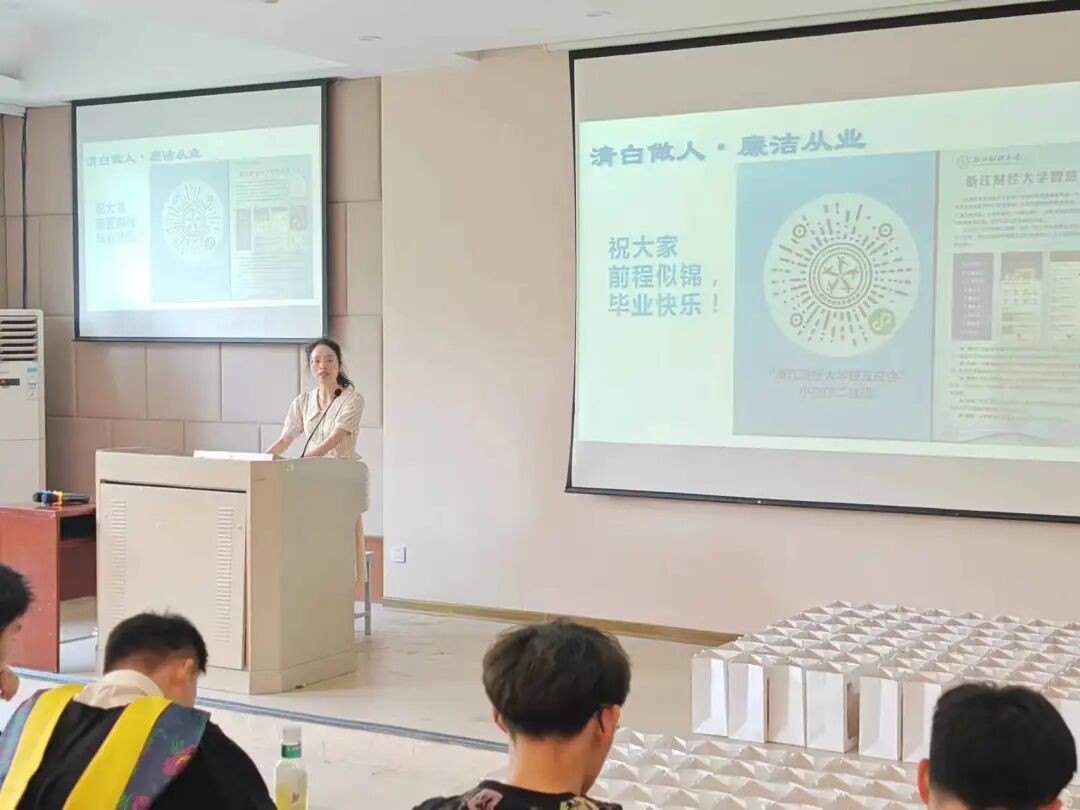 本次毕业生廉洁从业教育大会暨毕业生离校教育会帮助毕业生们进一步巩固了廉洁意识。希望2024届毕业生们在今后的学业生涯及职业发展中深刻践行诚实、守信、公平、公正的价值观念,在新时代扛起新担当、展现新作为、做出新贡献。