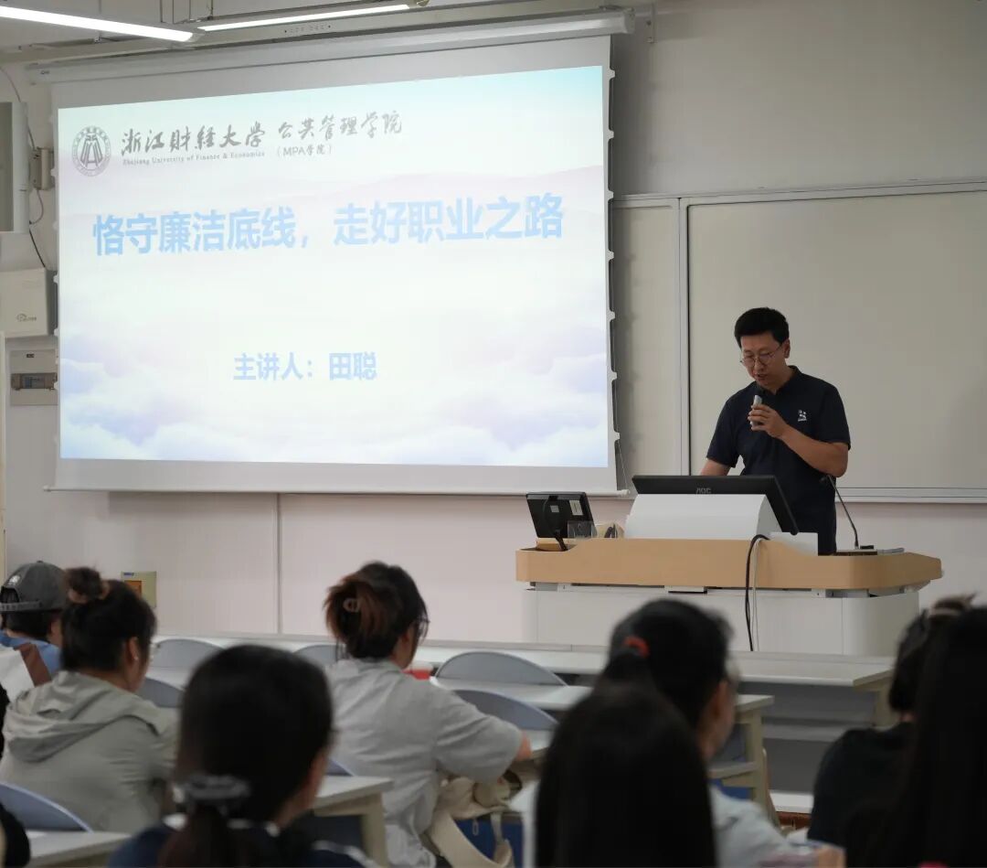 会上,田聪强调,学校面向全体毕业生开展廉洁文化宣传教育,是为进一步深化、巩固毕业生廉洁意识、诚信意识的有力举措。作为即将步入社会的毕业生,在掌握专业技能的同时,需将“廉洁、诚信、公道”牢记于心,坚持在从业过程中恪守职业道德,做到诚实守信。他勉励毕业生们,在接下来的工作中要热爱自己的工作岗位,不触纪律红线,守住职业底线,廉洁从业。