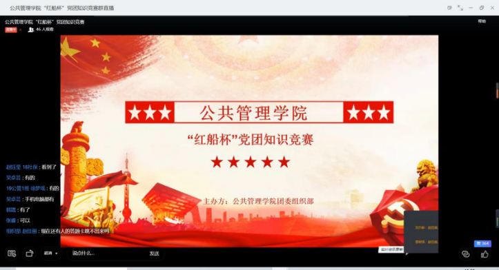 本次活动由学院团委组织部负责人赵佳丽主持,以线上直播的形式进行。主持人通过播放PPT上的题目,参赛选手快速浏览题目后在主持人发布的答题卡上选出自己认为正确的答案。