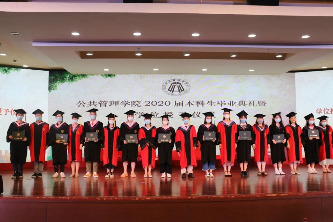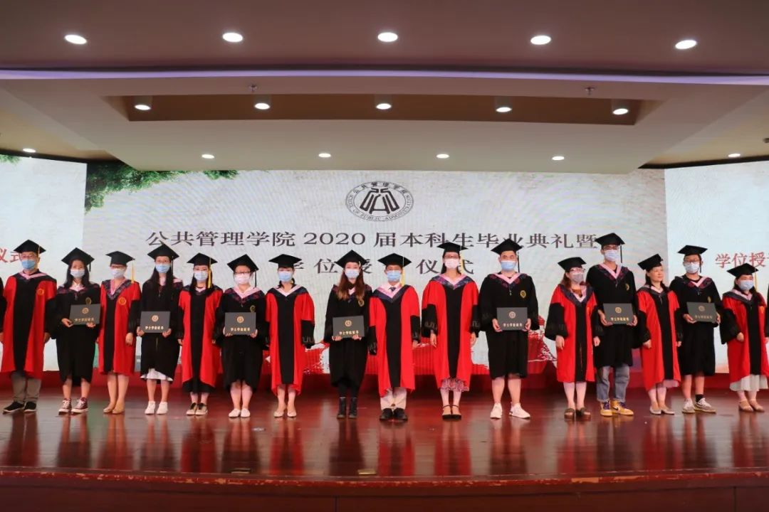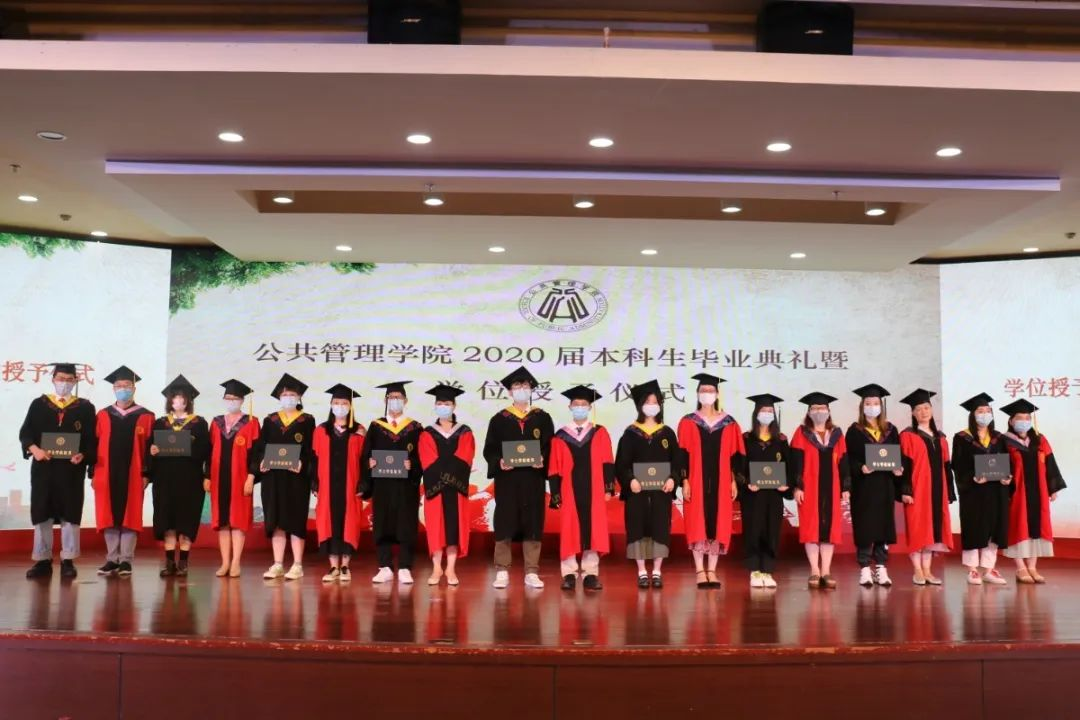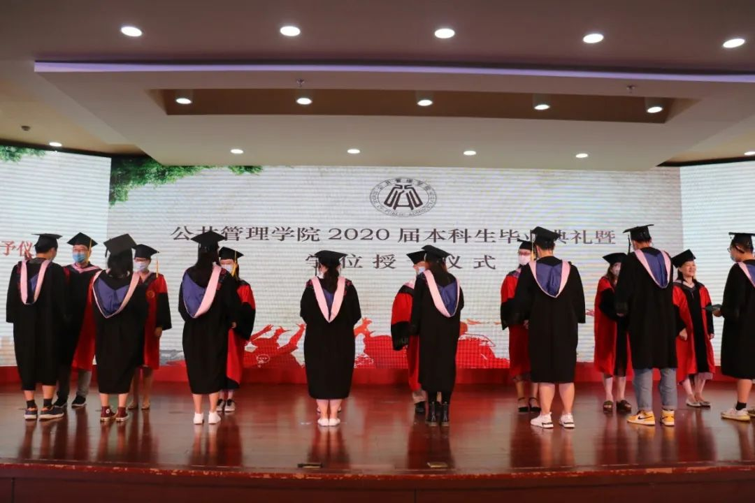 学院领导和老师向公共管理学院2020届本科毕业生进行学位授予仪式,师生们温暖拥抱,互相表达不舍与祝福。