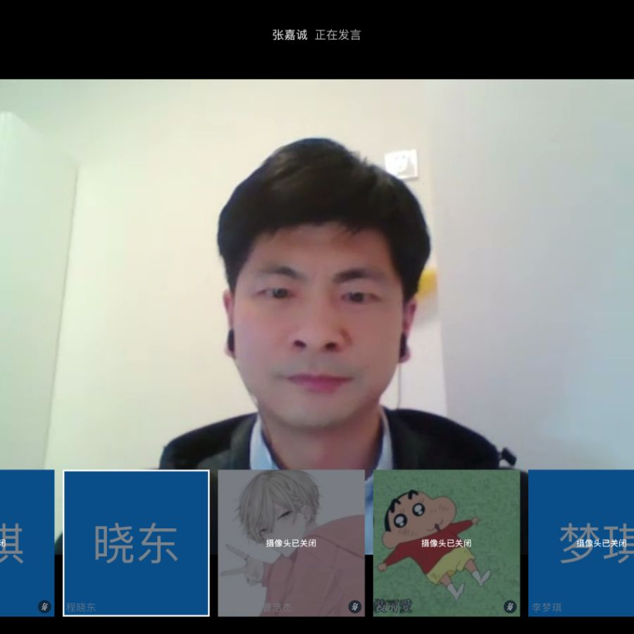 最后由程晓东老师对本次会议进行总结,特别指出习近平总书记的“疫情防控和复工复产两手抓”对我们而言就是注意安全且好好学习。程老师还提到,在重视疫情防控之余,各班还可以组织网上活动。本次会议在老师和同学们全方位地交流了情况后,圆满结束。