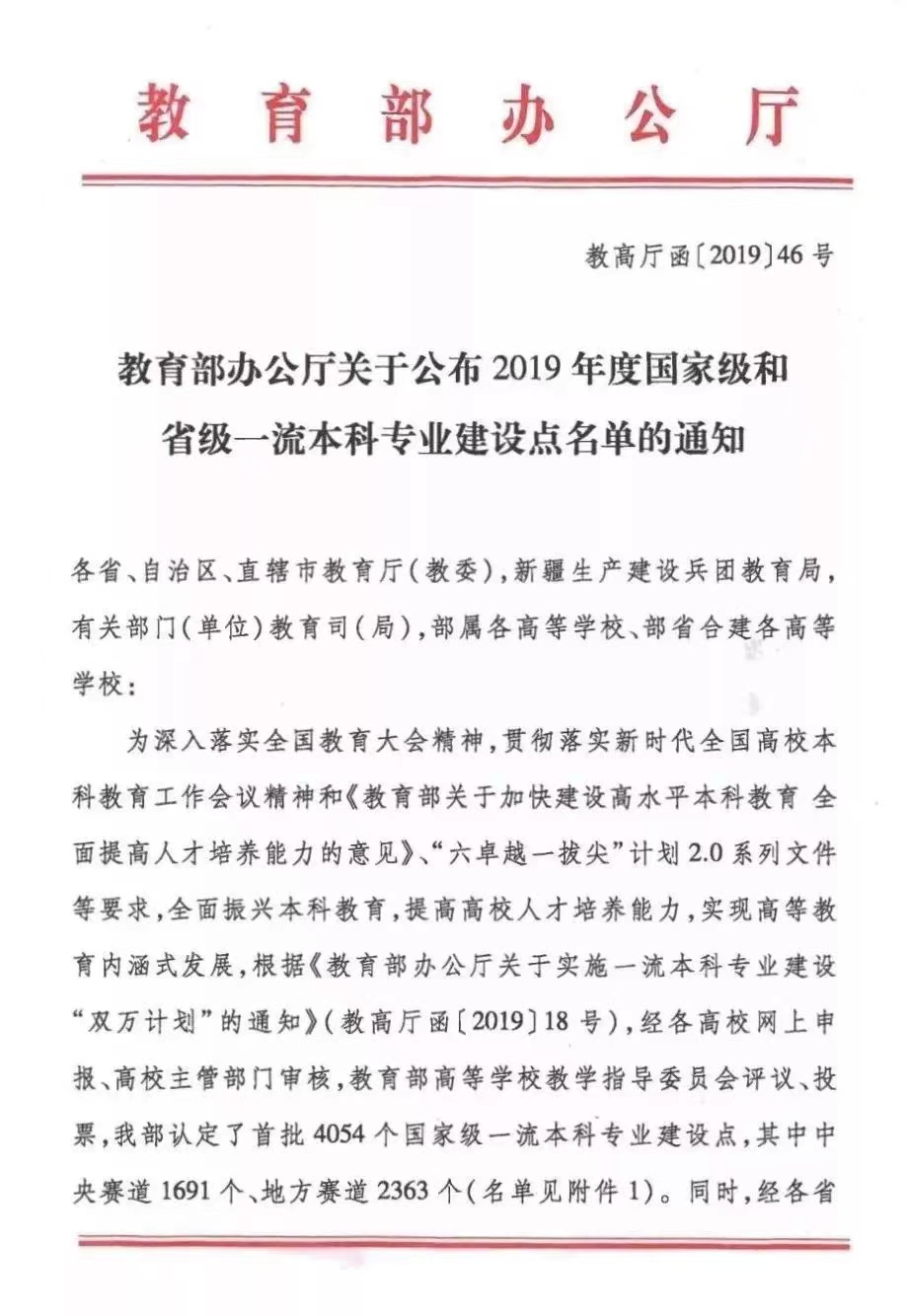 我院2019年度国家级和省级一流本科专业建设点入选名单