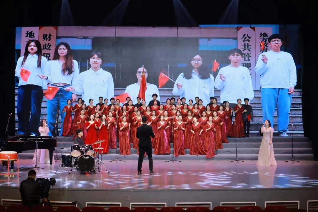 两首歌曲前我们都加入了学生朗诵,公管学子用饱满的热情和慷慨激昂的语调,向祖国表达自己的爱意。