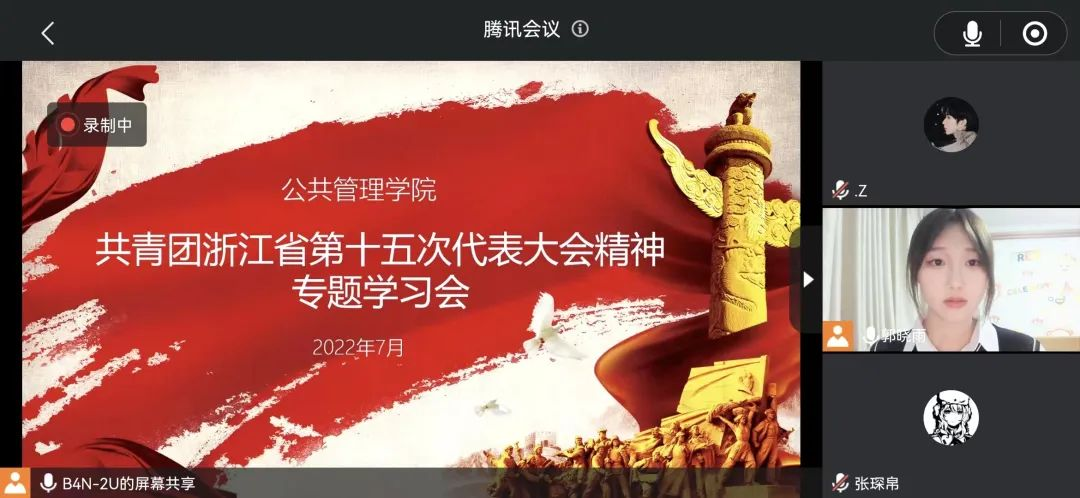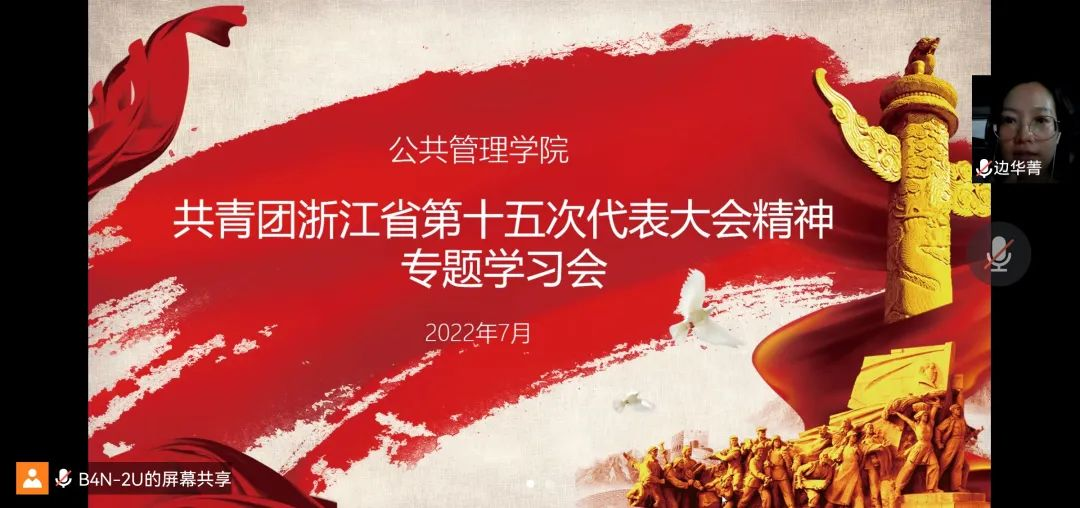 在公共管理学院团委书记边华菁、学生会执行主席郭晓雨、理论中心组负责人谢翁珂的号召下,学院青年师生深入学习共青团浙江省第十五次代表大会精神,并依次发表了自己的心得体会。