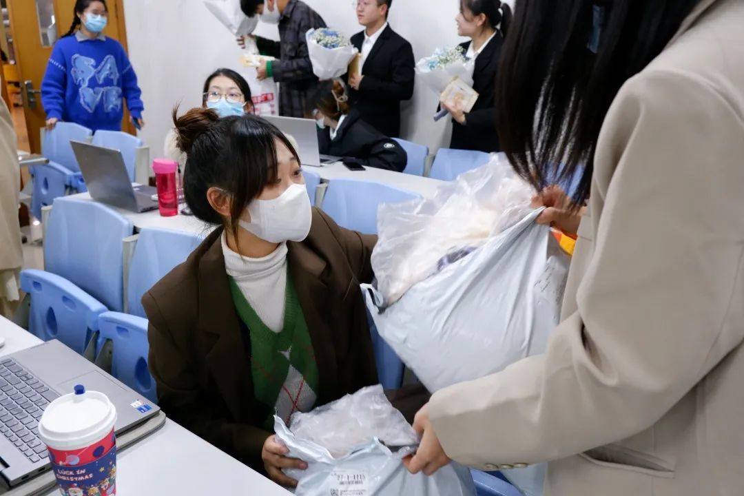 在大会上半场结束期间,各部门、协会干事将自己精心准备的礼物赠与负责人,现场欢乐不断。该环节不仅肯定了负责人们这一学期以来对干事们的照顾,也增进了负责人们与干事们的感情,增强了公管团学社成员的凝聚力,促进了公管团学社的和谐发展。