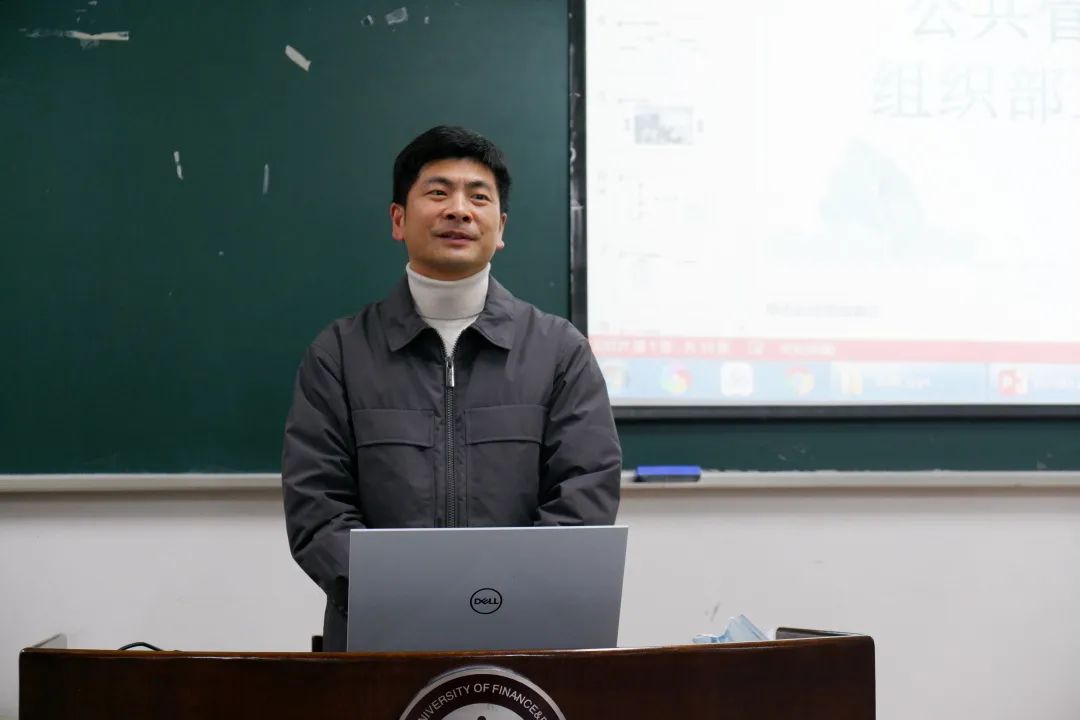 随后,党委副书记程晓东老师进行致辞。他首先表达了对大家这一学期以来辛苦工作的感谢,然后以一个词概括了本学期的工作,即“硕果累累”。程书记提出,本学期的工作取得了很多重大的突破,尤其是科创方面取得了长足进步。随后书记从理论学习与思想引领、服务与成长、继续弘扬公管文化以及加强队伍建设四个方面提出了对来年团学社工作的期待,希望我们团学社的大家庭在来年的工作中,能继续携手共进,再创佳绩!