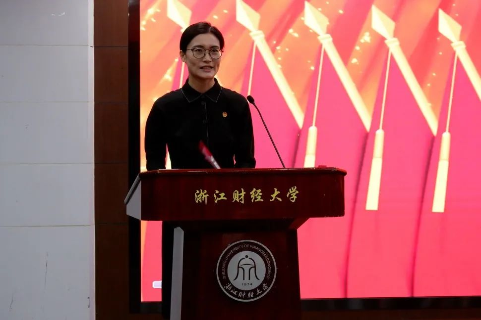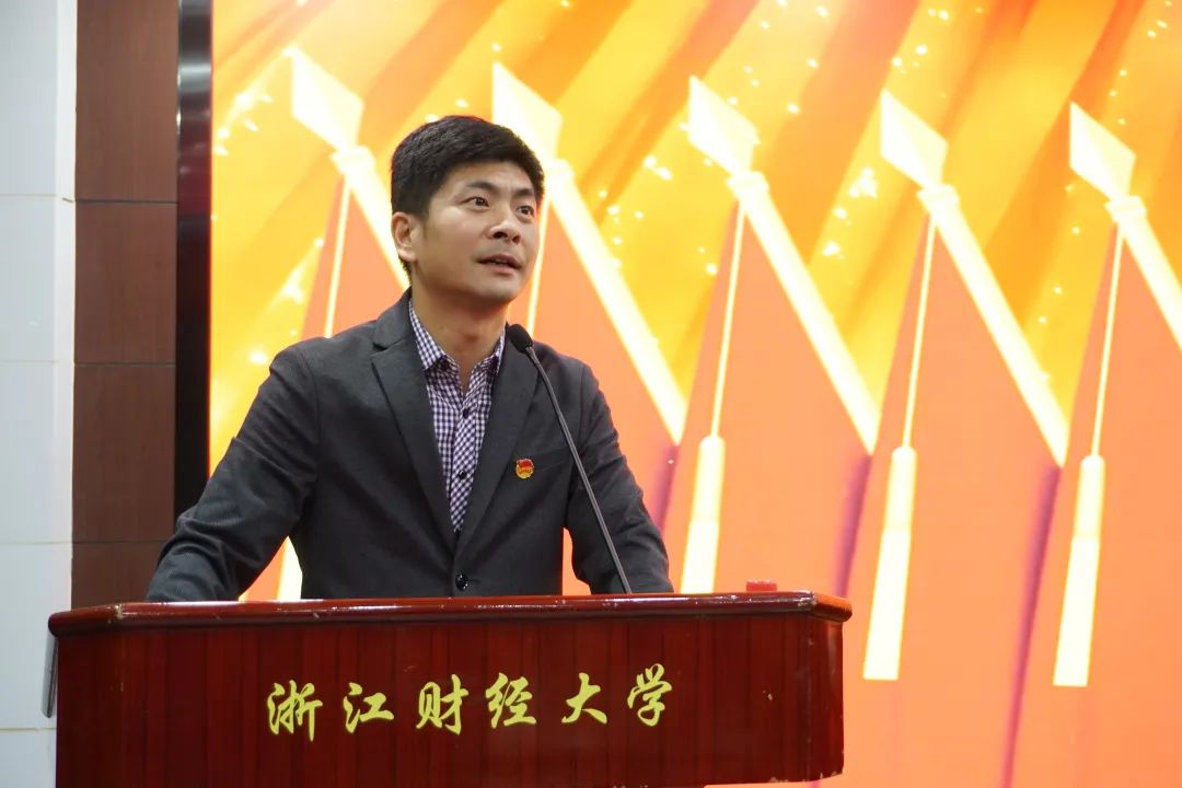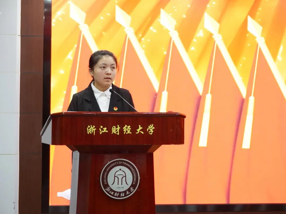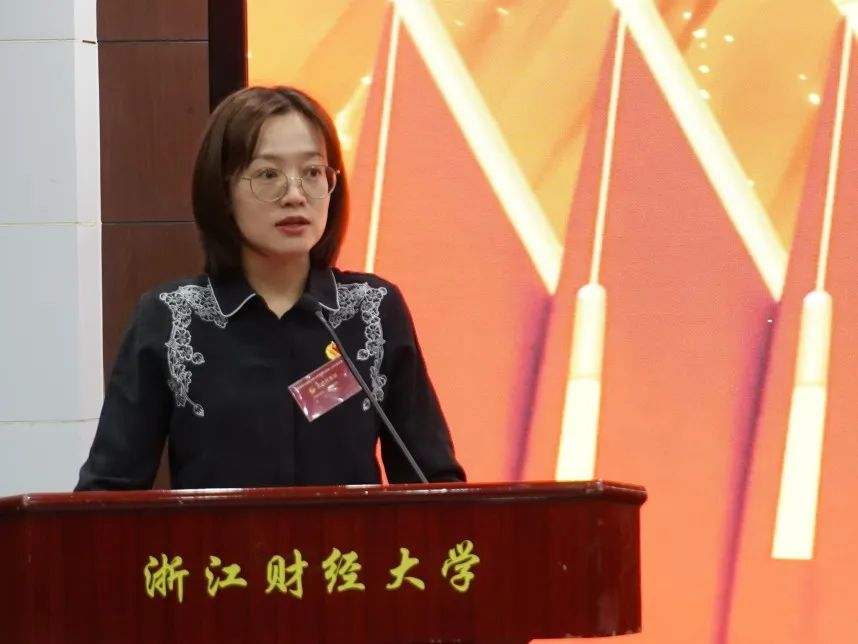 第一次全体会议中,我院团委书记边华菁代表共青团浙江财经大学公共管理学院委员会作工作报告。