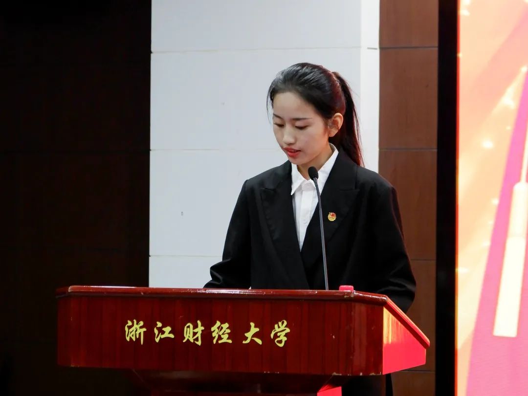 我校学生会执行主席杜嘉雯、浙江工商大学公共管理学院学生会执行主席董圣洁分别代表校团委学生会,兄弟院校团委学生会致贺词。