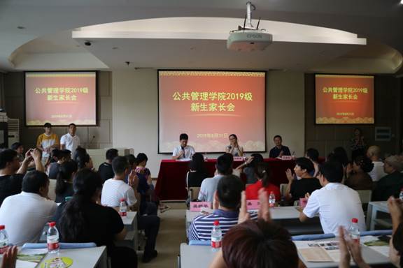 下午1点30分,公共管理学院新生家长会在1号楼208教室召开,为表示对新生发展的重视,院党委书记沈晓敏、院党委副书记程晓东、副院长王直民、全体19级新生班主任以及新生辅导员出席本次家长会,会议由程晓东书记主持。会议伊始,程晓东书记对新生的到来表示热烈欢迎,随后沈晓敏书记就学院近年来丰硕的科研成果、合作交流成果进行介绍,并向新生家长们展示公管学院“导师有约”等优质的教学模式,希望新生家长们能够“与学院同向而行”。其次,王直民老师系统详细地介绍了公管七大专业,帮助新生家长们了解公管学院各专业的发展情况以及未来就业前景。最后程晓东书记介绍了学院学生工作的基本情况,特别强调了学生的安全问题。会后,新生家长们就自身疑惑积极地向班主任、辅导员请教,老师也热切的给予回复,一一解答了家长的困惑。