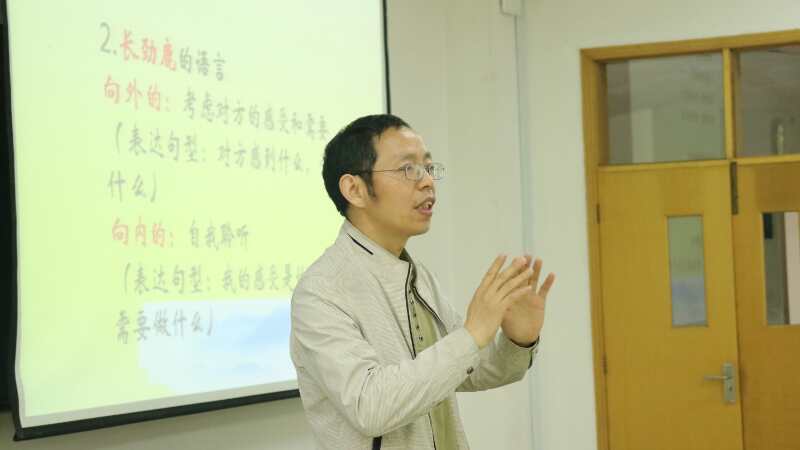 叶立军老师从生活中的真实案例出发,围绕“人际关系中的相爱、相处、理解、沟通”四个方面,阐述了人际关系中的要领。他强调,不论在学习还是生活中,只有以积极正确的方法处理人际关系,调节好自己的情绪,才能解决面临的人际关系问题。