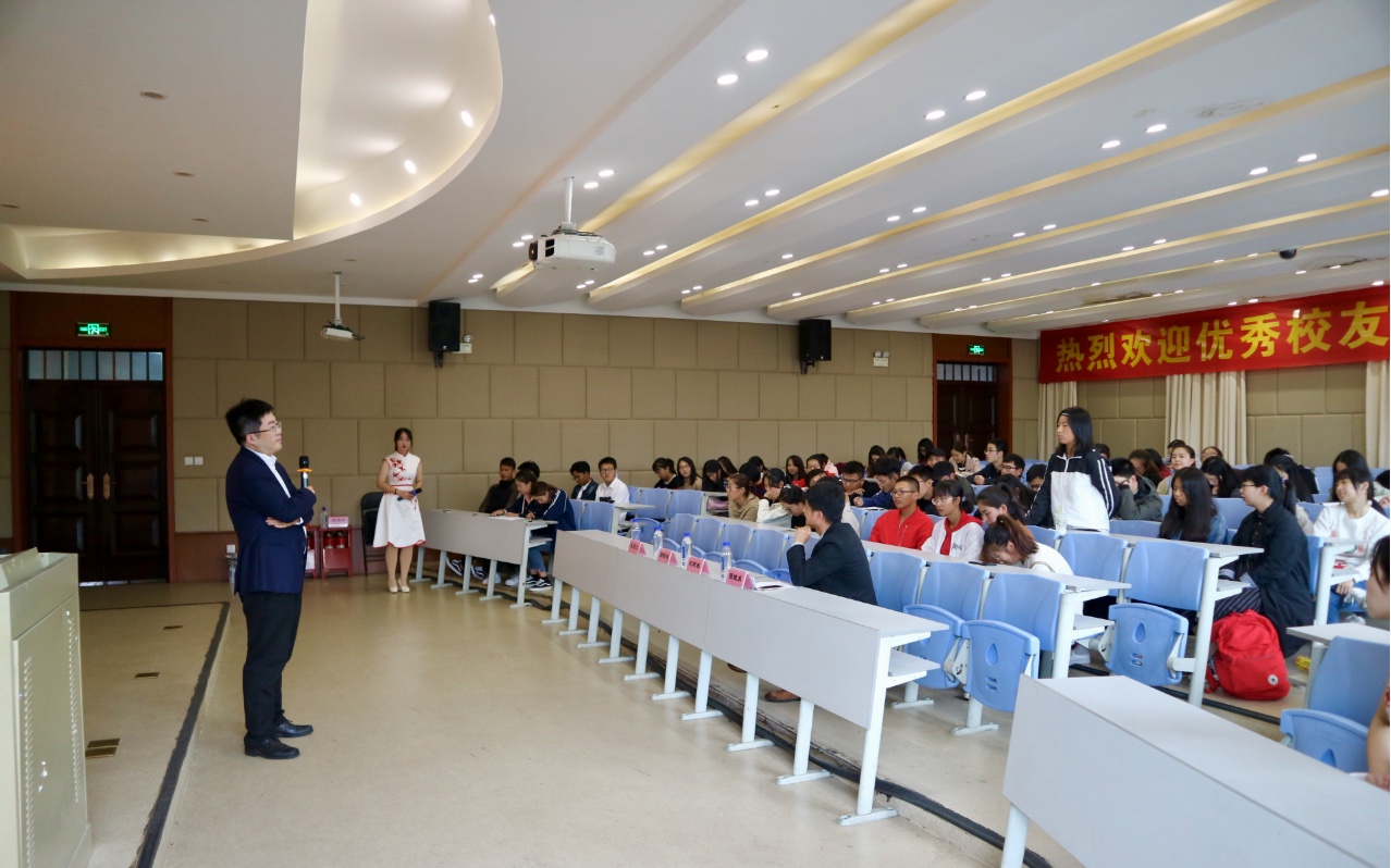 王思立校友重温了大学时代的点滴记忆以及毕业后就业、创业等发展历程,与同学们分享励志故事,交流心得体会,畅谈人生感悟,全程充满对母校和老师的感恩之情。他鼓励同学们尽早明确生涯规划,敢想敢拼,不畏艰难,以高效的学习能力面对不同挑战。他诚恳朴实的话语、催人奋进的事迹引发同学们的广泛共鸣。现场掌声不断,气氛活跃。