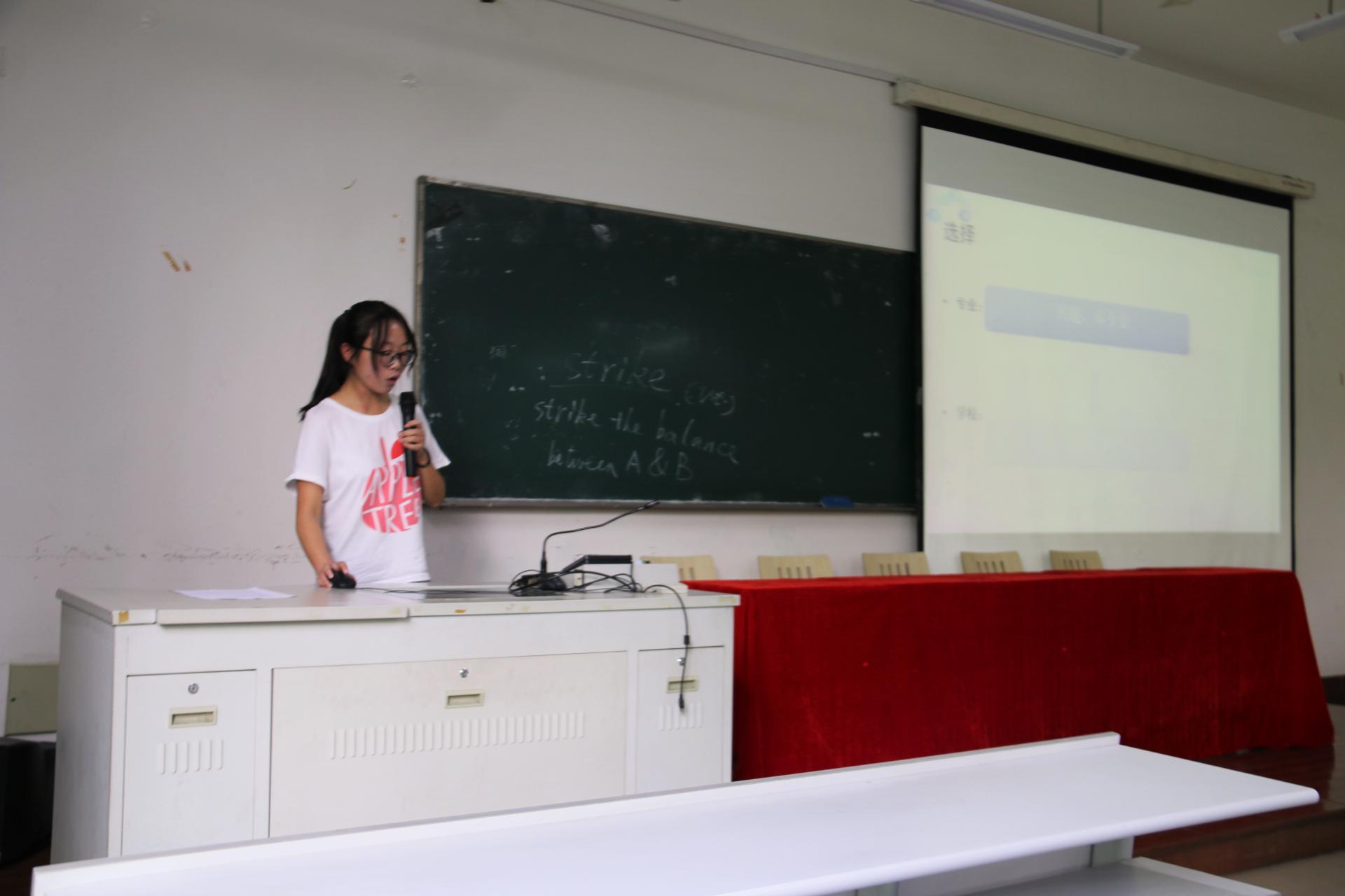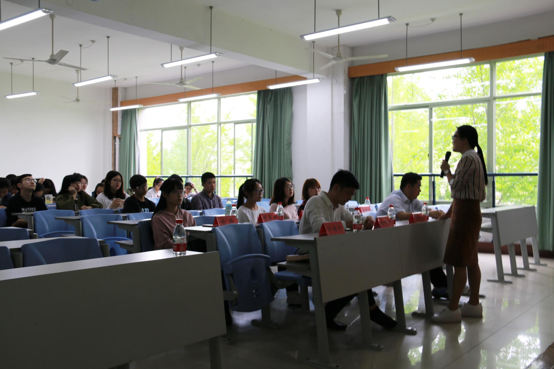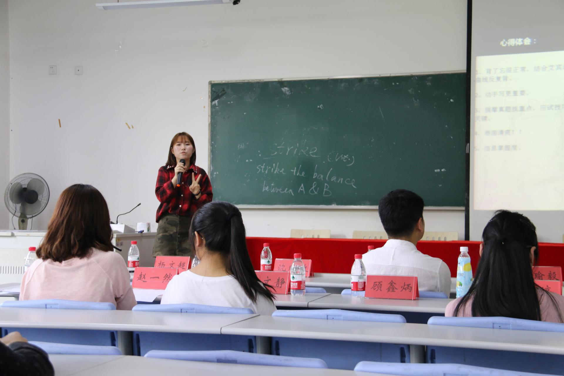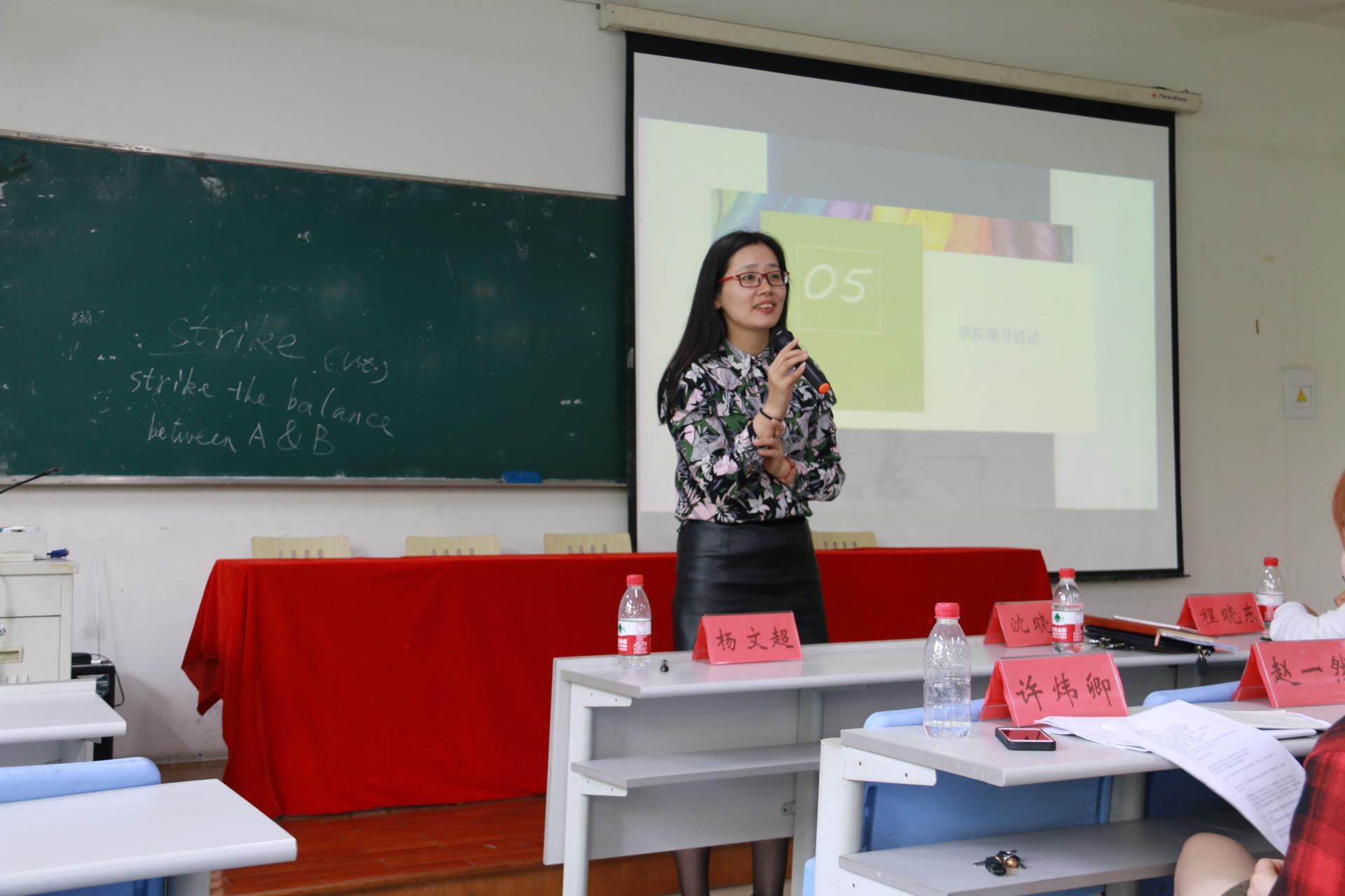 外国语学院邱瑜毅老师以及两位2017届考研毕业生代表许炜卿、樊文静为在场学子分享有关考研的宝贵经验。从备考状态到各个学科的备战情况作详细介绍,让在场同学生动全面的了解考研意味着什么、需要哪些准备以及如何科学备考。会议最后,沈晓敏书记发表讲话,她鼓励我院学子积极参加考研,并分享了自身考研经历,深深地打动了在场的每一位学子。此外,沈晓敏书记还就学院如何更好地为每一位备考同学提供服务工作对在场同学一一进行询问,力争为备考学子提供安心、舒心、放心的备考环境。
