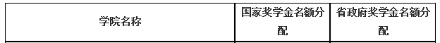 2022年我院国家奖学金总名额为2名,省政府奖学金名额为31名。根据各学院二年级及以上在校学生数,将名额分配如下(各班名额已公示):
