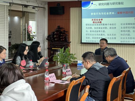 2026年4月1日,西北大学公共管理学院吴玉锋教授应邀莅临我院,在学院517C会议室开展题为《参保行为与社会资本》的讲座。讲座由黄志岭副院长主持,公管学院社会保障专业的教师及研究生共同参与。
