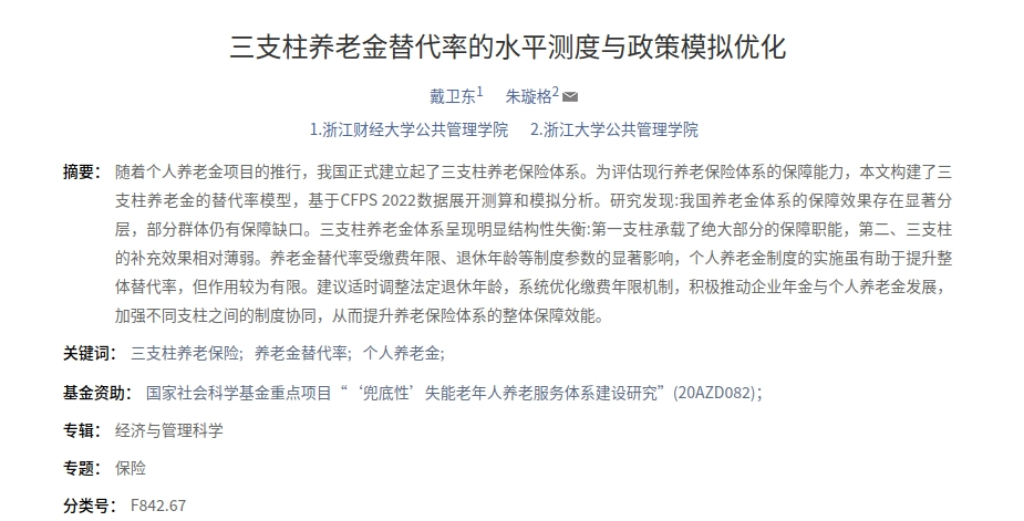论文题目:三支柱养老金替代率的水平测度与政策模拟优化