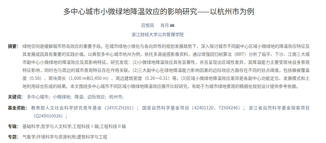 论文题目: 多中心城市小微绿地降温效应的影响研究——以杭州市为例